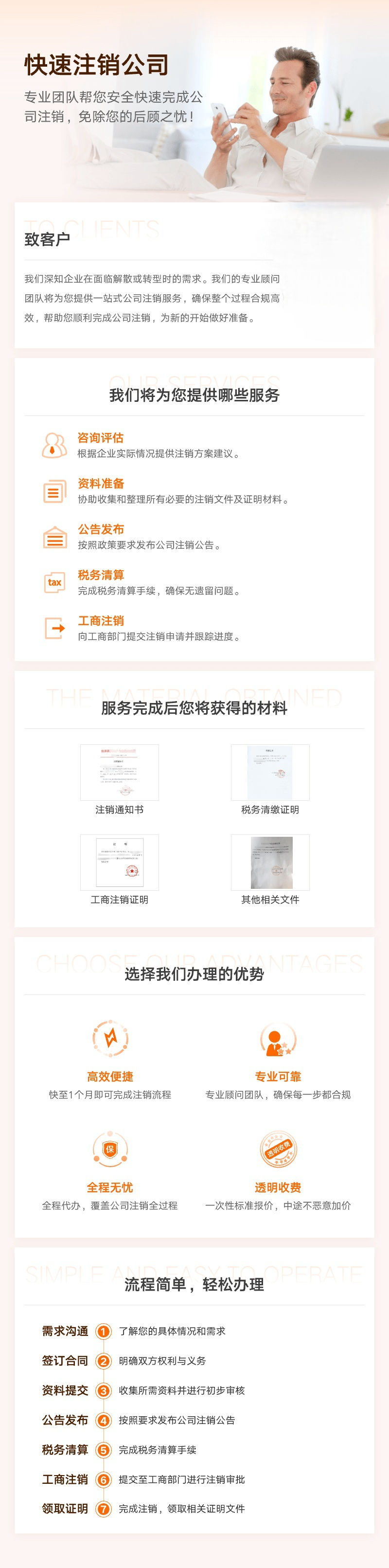 针对公司注销流程繁琐、易延误、费用高等痛点,专业团队精通注销法规与流程,全程代办清算备案、税务注销等全环节,精准规避材料疏漏与流程错误,办理周期缩短 50%。让您告别往返奔波与额外支出,全程合规注销。